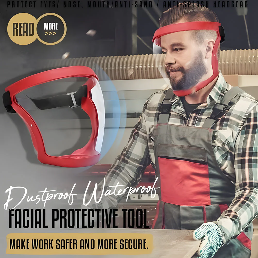 - Comprehensive Face Protection: Covers eyes, nose, mouth, and chin to block dust, splashes, oil, and flying particles during work.